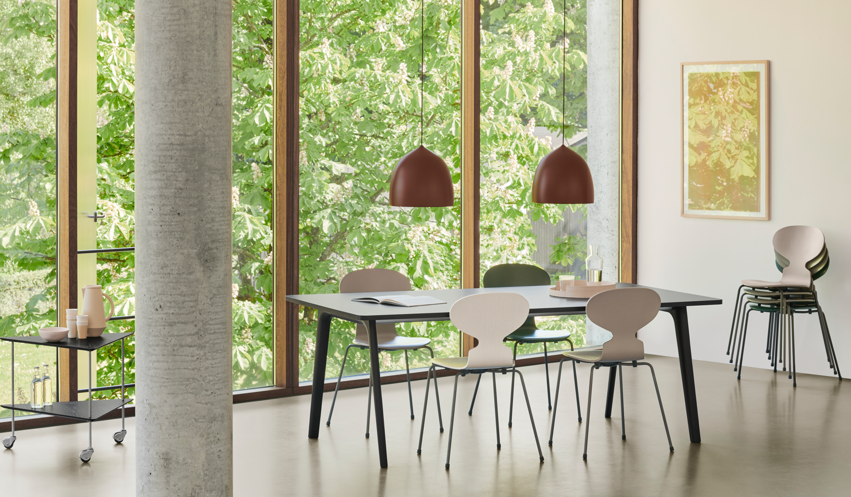 3101モデルは、オリジナルの3本脚のアリンコチェアの彫刻的なシンプルさを残す一方、多種多様なインテリア空間に合うよう、その特徴的なデザインをさらに発展させたモデルです。4本脚のアリンコチェアはヤコブセンの存命中も限定的に製造されることはありましたが、1971年からスタンダードモデルとしてコレクションに加わりました。