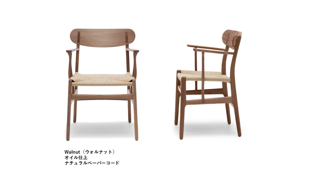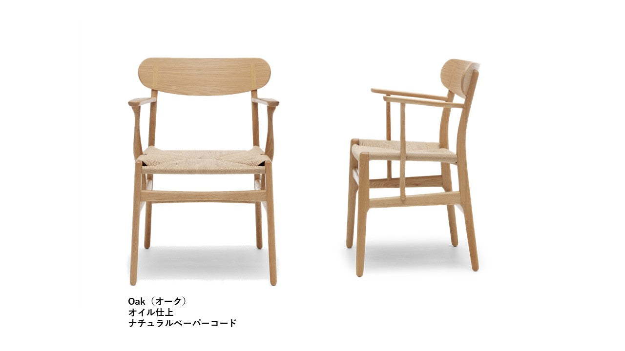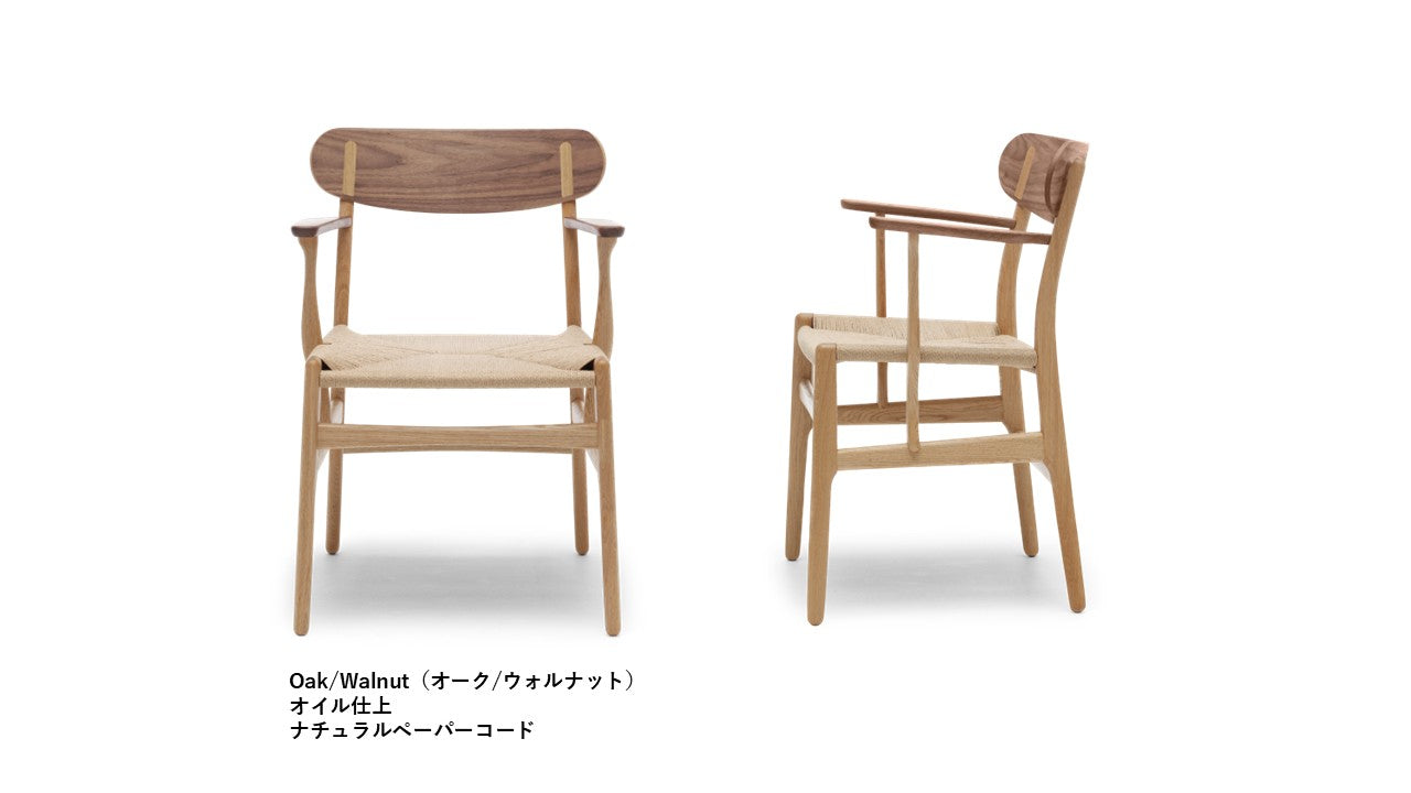 ハンス J. ウェグナーが1950年にカール・ハンセン&サンから発表した最初の椅子シリーズの一つ。当時、木製のラウンジチェア CH22をもとにCH26もデザインしていましたが、図面は残されていたものの製作されず、2016年にようやく復刻されました。