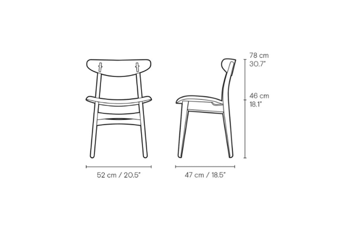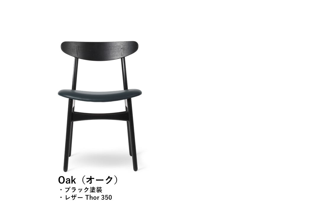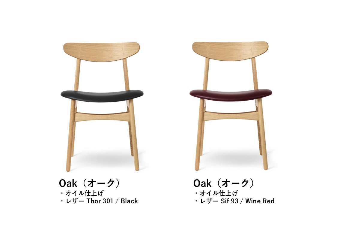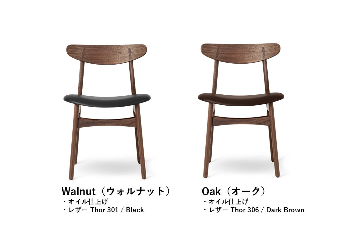1954年に発表されたCH30。十字形の埋木、カーブする後ろ脚に沿って傾斜するように配されたオーバル形のバックレストなど、ウェグナーならではの意匠が随所に見られる1脚です。