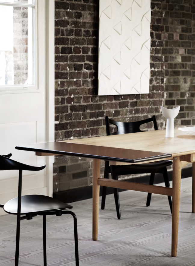 1955年にスウェーデンで開催されたH55 (ヘルシンボリ国際博覧会) に出展するためにウェグナーがデザイン。多目的に使用できる柔軟な機能性とシンプルでエレガントなフォルムで、スタッキングも可能です。