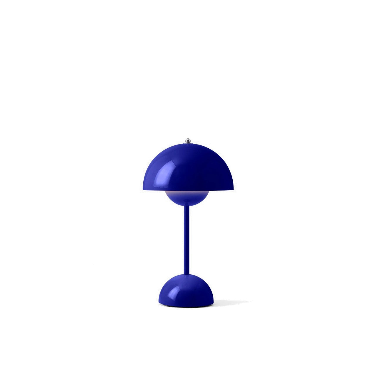ドーム型のアッパーシェードと、そこからぶら下がっているような丸みを帯びた下側のシェードが作るシルエット、そして鮮やかなカラーが特徴のフラワーポットは、ヴァーナー・パントンが常に新しいデザインを追い求めていた挑戦的な姿勢を体現しています。ポータブルランプであるVP9は、フラワーポットのテーブルランプタイプよりも少し小さく、意図的に軽量に設計され、電源はUSB充電ケーブルを採用しています。多くのカラー・バリエーションからお選び頂くことが可能で、充電いただくことで屋内だけでなく、一定時間屋外でもお使いいただけます。