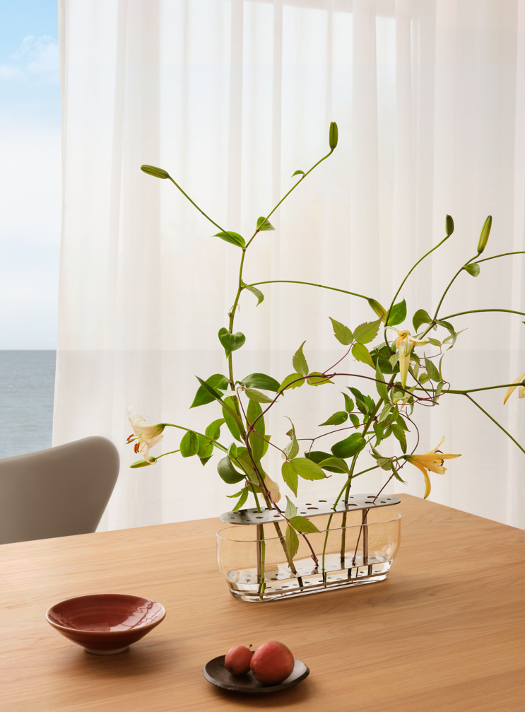 ハイメ・アジョンのイケバナベースは、美しさへの憧れと日本の伝統ある生け花の精神に基づきデザインされています。一輪一輪ベースの穴に挿して飾ることができます。
