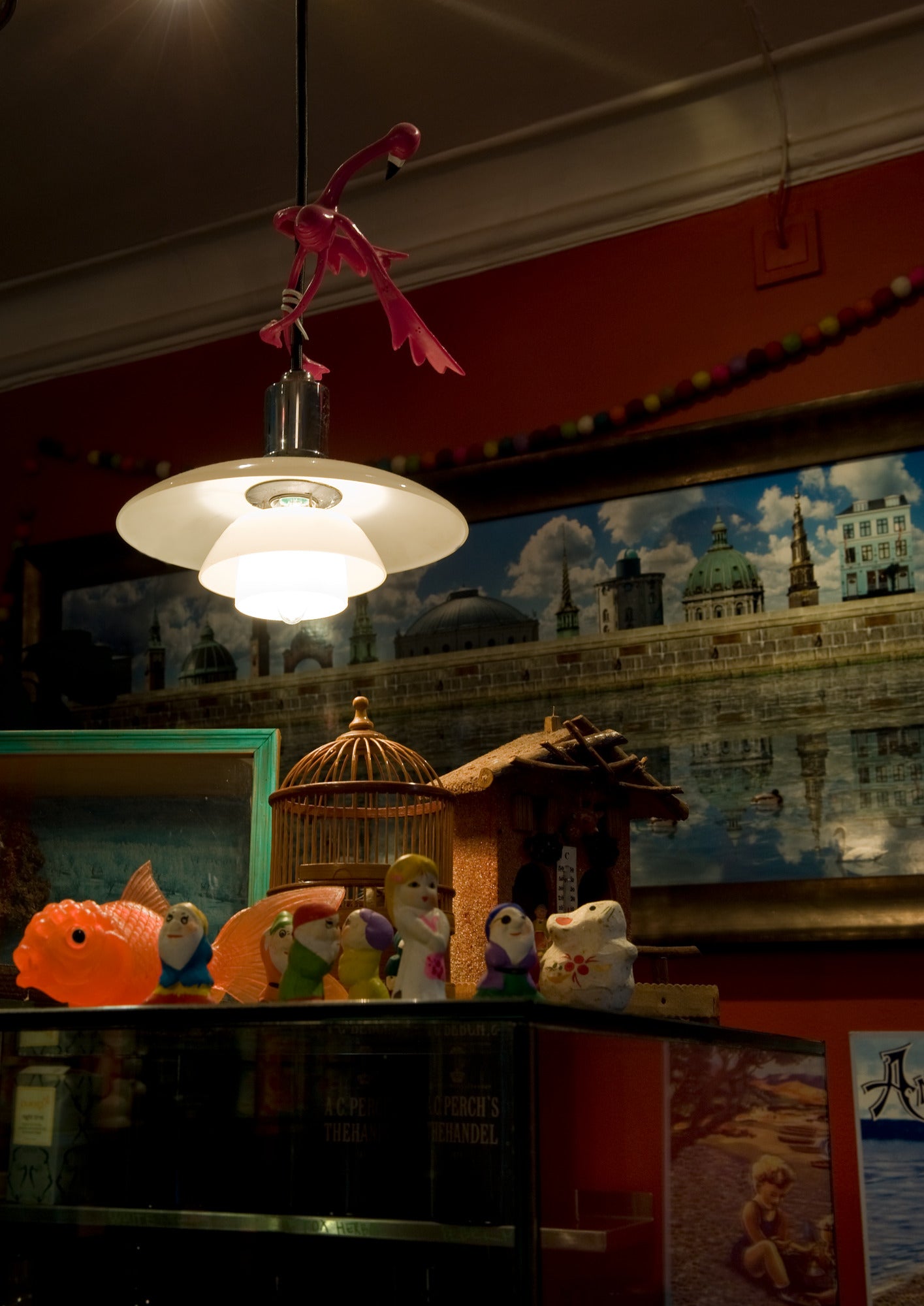 現在製造されている3枚シェードのPHランプのなかで最小のものです。眩しさのない心地よい光を生むために、すべてのシェードの内側をフロスト加工しています。小さいながらも光の特性は秀逸で、ひとや物を柔らかく照らします。テーブルやカウンターなどの上に複数並べて吊り下げるのに適しています。1998年に復刻発売。