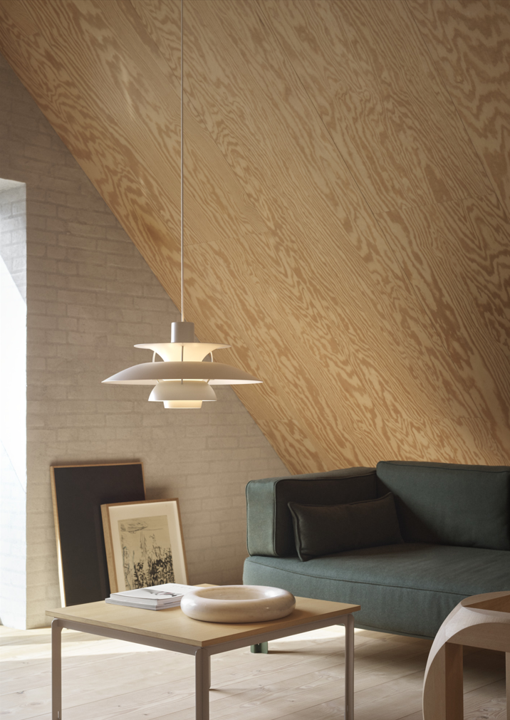 北欧デザインを代表する名作ペンダントライトPH5。眩しさを抑えられた柔らかな光が、ダイニングやリビングを心地よく照らします。空間を格上げするインテリア照明として人気です。
