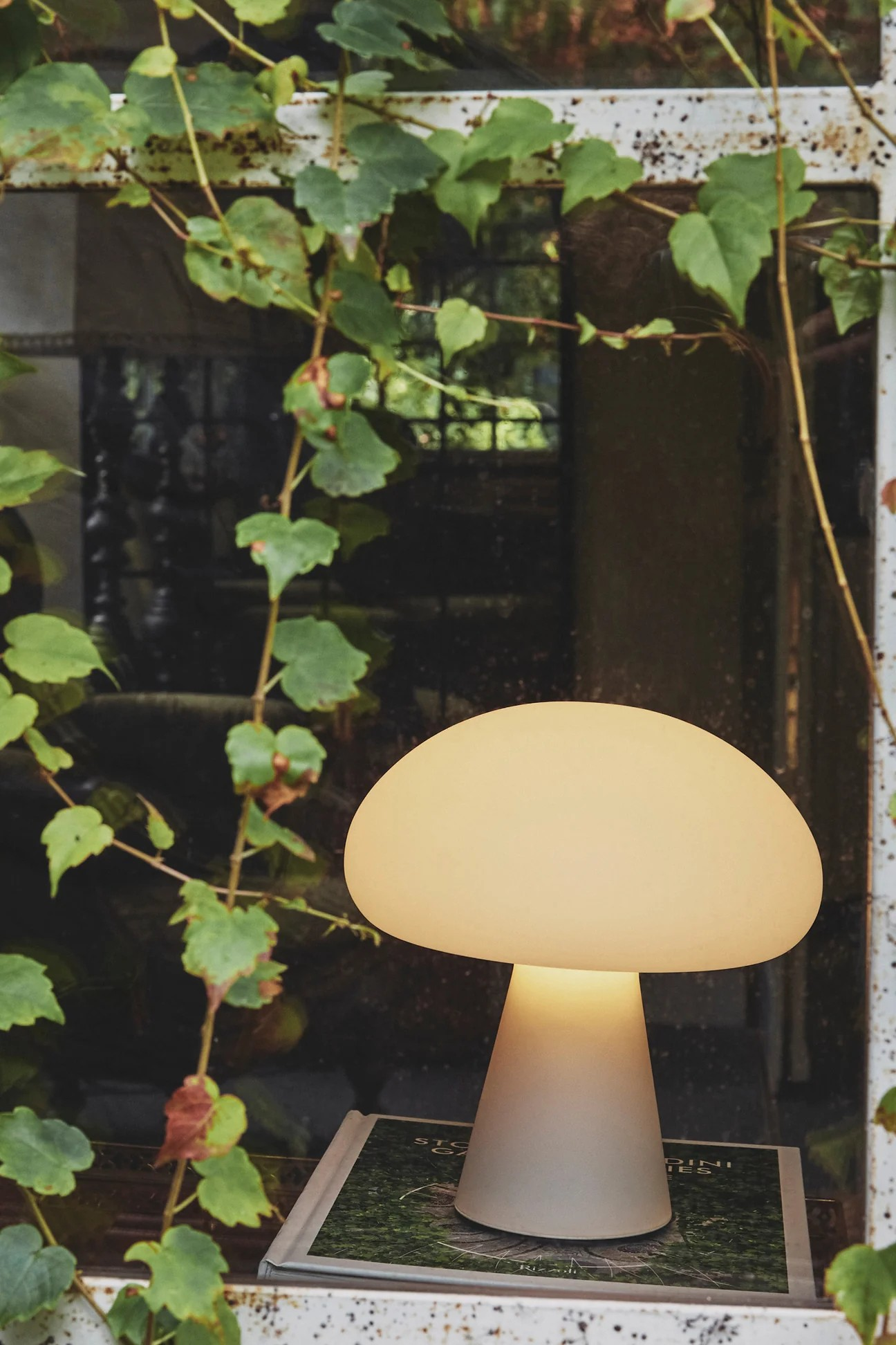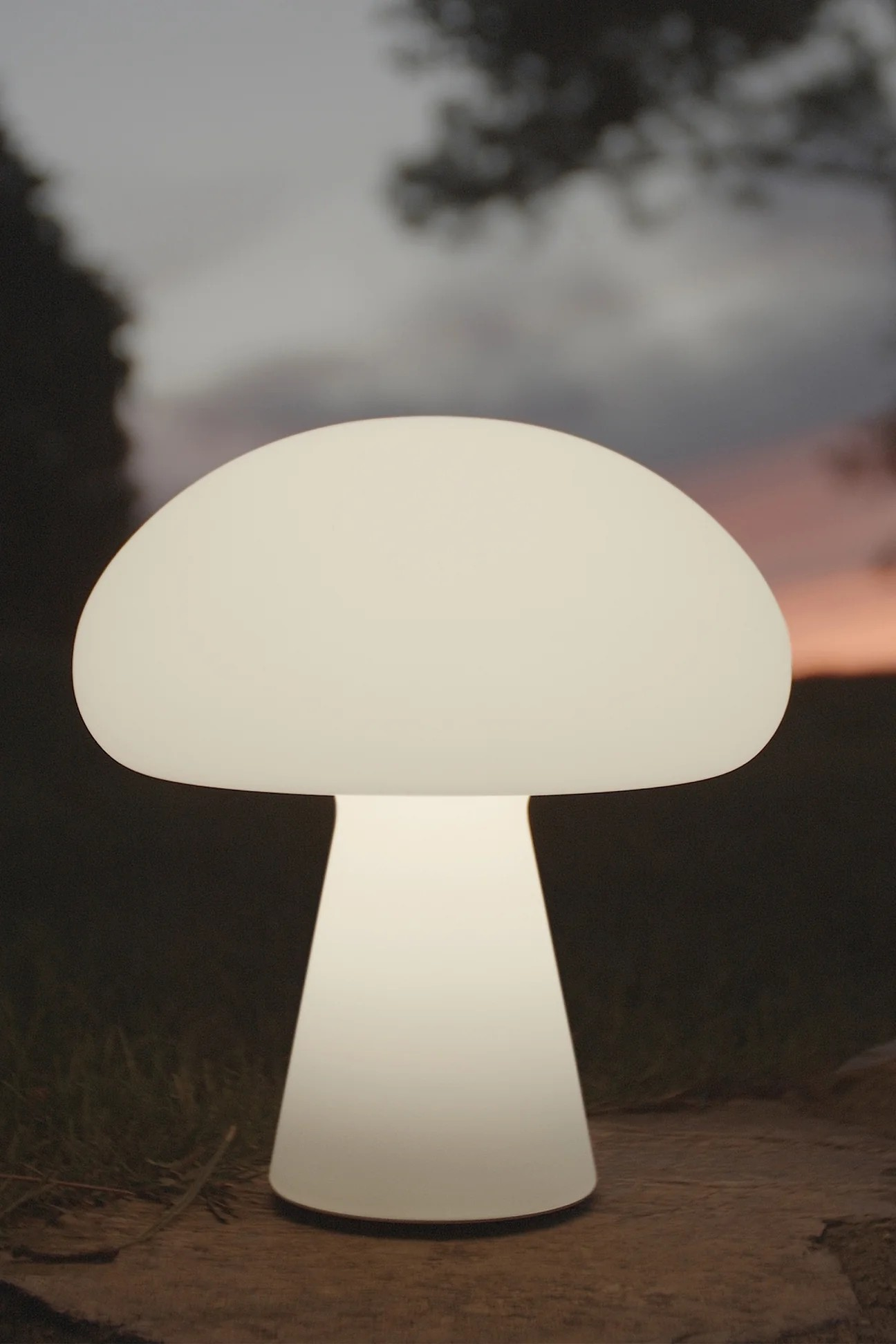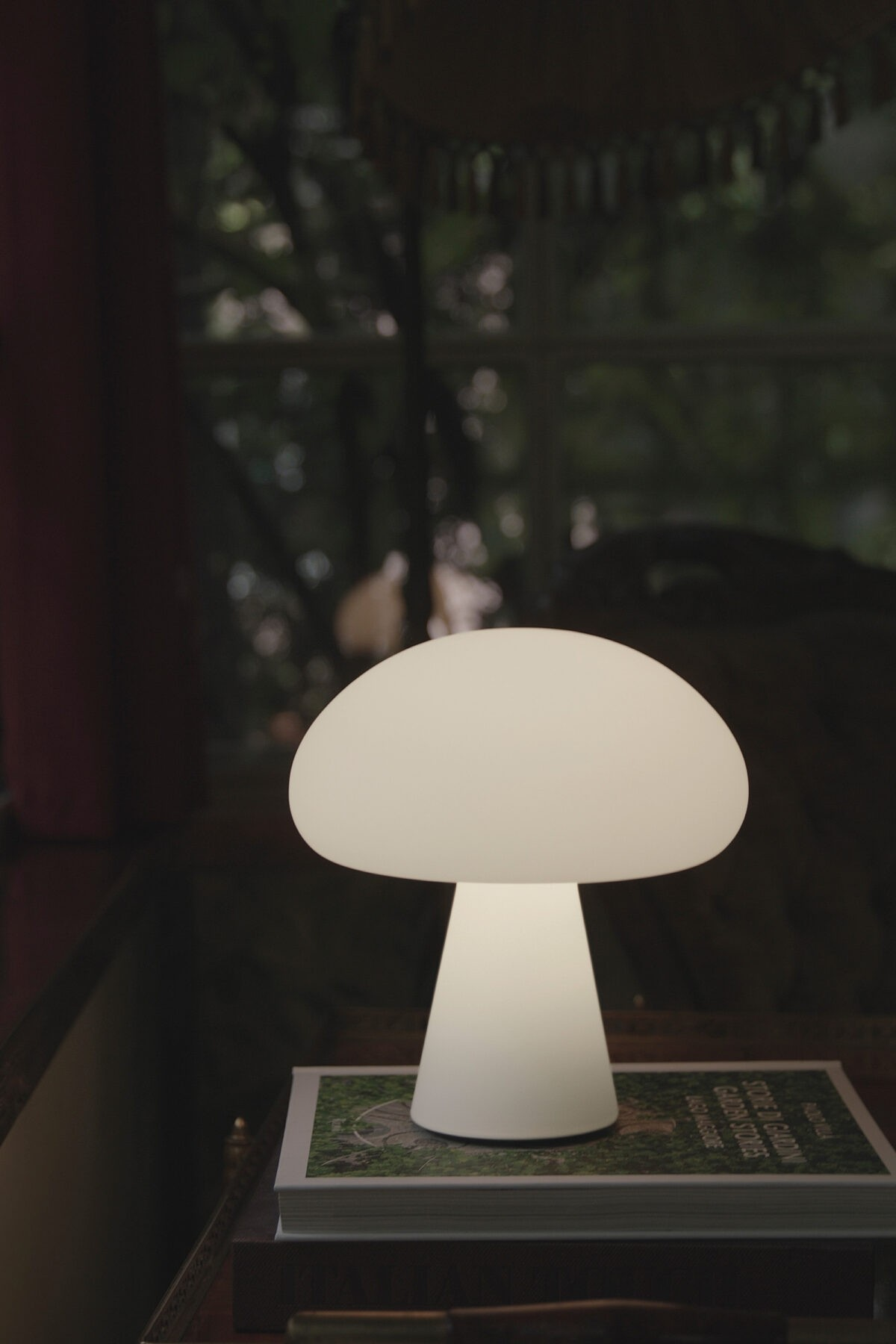 遊び心溢れるきのこのようなシェイプは、1970年代アメリカ西海岸のポップカルチャーやスペースエイジを反映したデザイン。フロストガラスのシェードとボディがシームレスにつながるランプは、点灯すると全体が柔らかな光を放ち、トータルルック照明の美しさを際立たせています。素材は手吹きのフロストガラスを採用し、滑らかな外観と美しい光の透過性を演出しています。