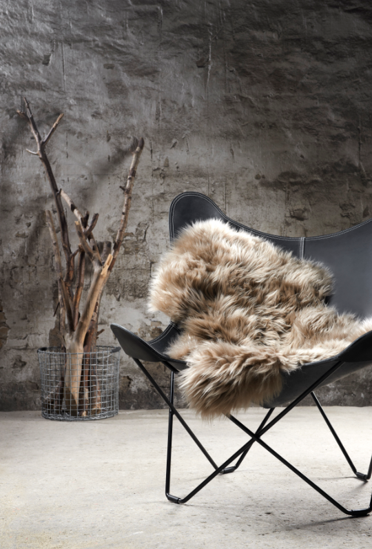北欧では、家具、特に椅子やソファなどにシープスキン(羊の毛皮 )を着せかけるのが一般的な風習です。座り心地を良くするためだけでな